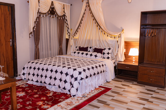 Thoughtfully designed for comfort and accessibility, this room is perfect for elderly guests, with ample space and supportive features for a relaxing stay. Spanning 240 sq. ft. on the garden floor, it accommodates up to two adults and one helper. The room features a king-size floor bed and an additional low side floor bed, ensuring ease of use and safety. Guests can enjoy serene views of the garden and the majestic Mount Fishtail. Amenities include air conditioning, a flat-screen TV with cable channels, high-speed Wi-Fi, and a rain shower. A complete set of toiletries is provided, including shampoo, shower gel, conditioner, soap, toothpaste, toothbrush, and tissue paper. Unlimited tea and coffee, along with an in-room kettle, adds to the convenience—ensuring a peaceful and comfortable stay tailored to the needs of aged guests.
